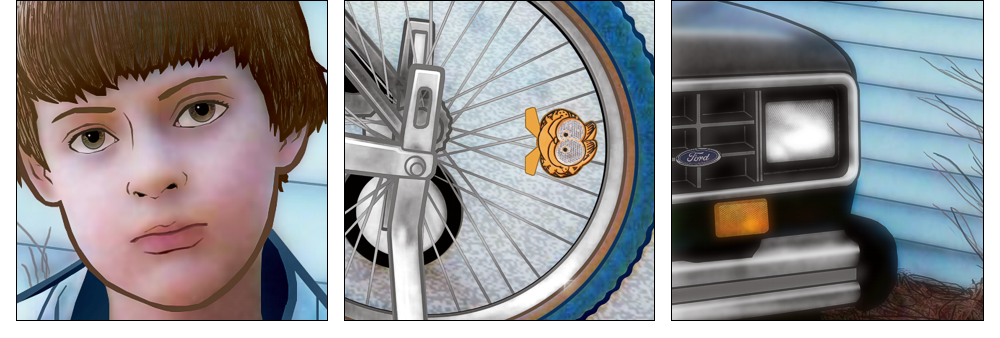 was Christmas, I was seven or eight, and I was super excited to receive my first bicycle. I don't look all that enthused in the pic, but I must have been playing it cool for the camera. It's already interesting for me to do self-portraits, since I don't do them that often, but this was extra